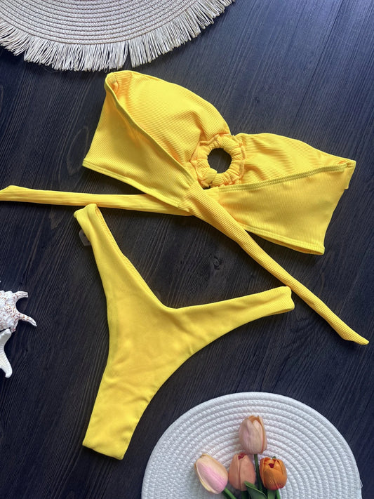 Tie-Side Bandeau Bikini Set – Brazilian Thong Swimwear