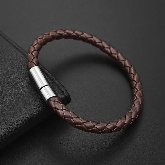 Classic Single Layer Leather Bracelet - Simple Braided Black & Brown Unisex Jewelry