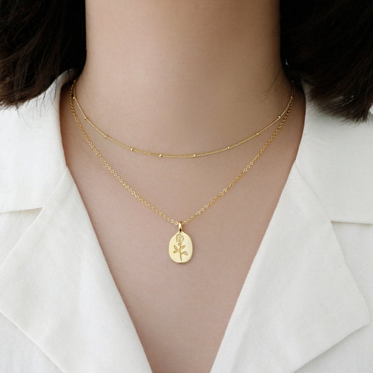 Classic Rose Fowler Oval Tag 925 Sterling Silver Necklace