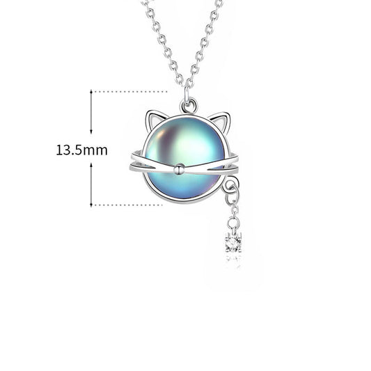 Cute Natural Moonstone Cat CZ 925 Sterling Silver Necklace