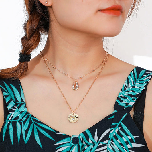 Docona Boho Water Drop Colorful Crystal Pendant Multilayer Necklace for Women