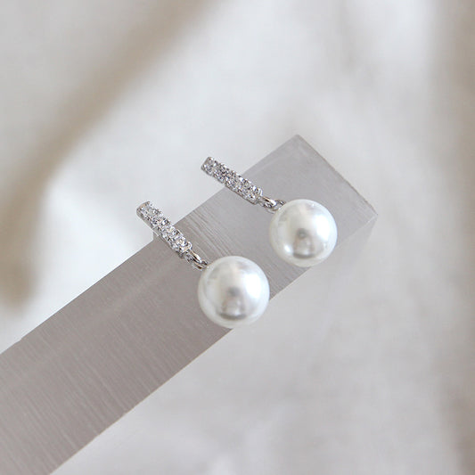 Elegant Round Shell Pearl CZ 925 Sterling Silver Stud Earrings