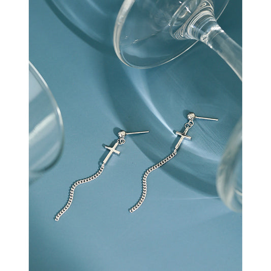 Elegant Cross Curb Chain 925 Sterling Silver Dangling Earrings