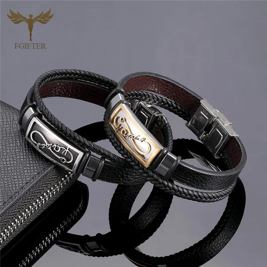Father's Day Personalized Infinity Leather Bracelet – Custom Two Names Retro Charm Gift for Men