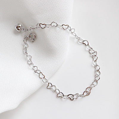 Girl Hollow Heart To Heart 925 Sterling Silver Bracelet
