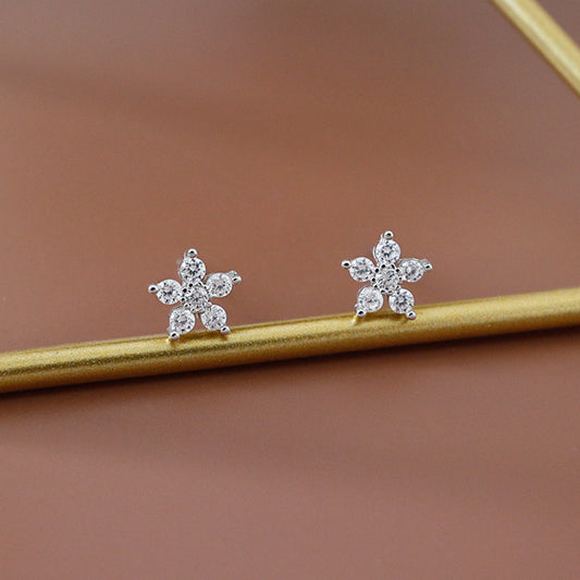 Girl CZ Plum Blossom Flower 925 Sterling Silver Stud Earrings