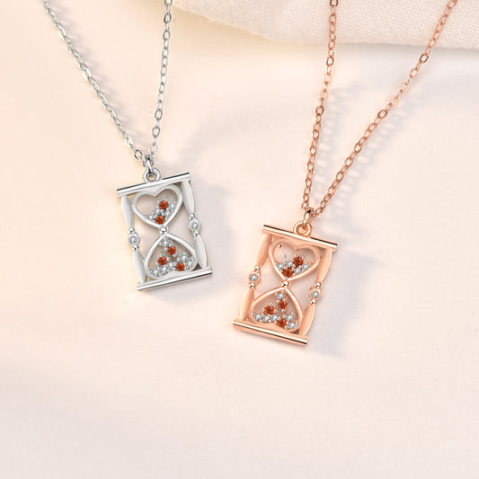 Gift CZ Heart Hourglass 925 Sterling Silver Necklace