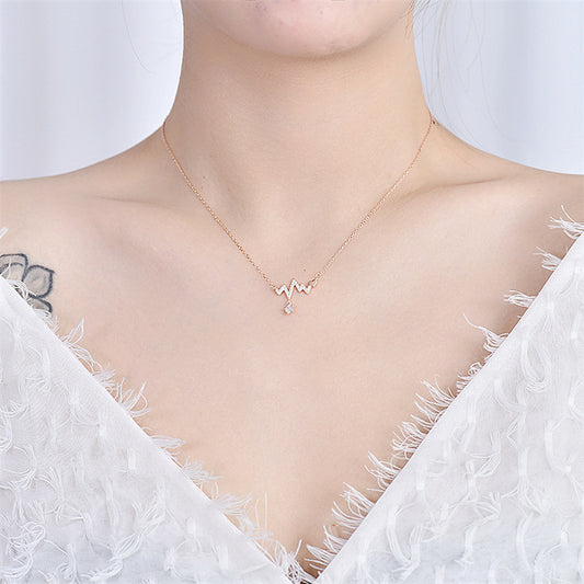 Honey Moon CZ Electrocardiogram 925 Sterling Silver Necklace