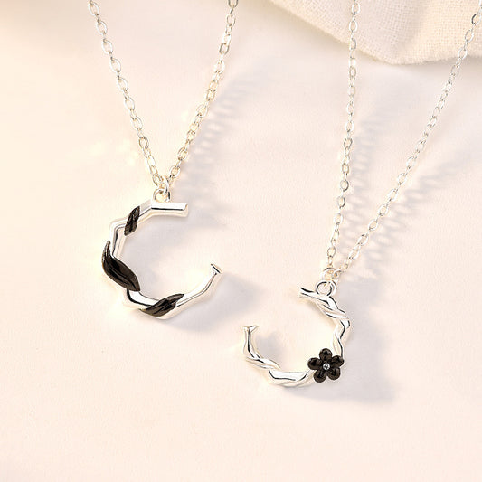 Holiday Childhood Sweethearts C Shape Plum Blossom Flower 925 Sterling Silver Necklace