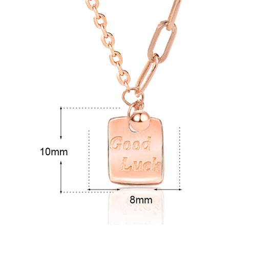 Modern Good Luck Letters Square Tag 925 Sterling Silver Necklace
