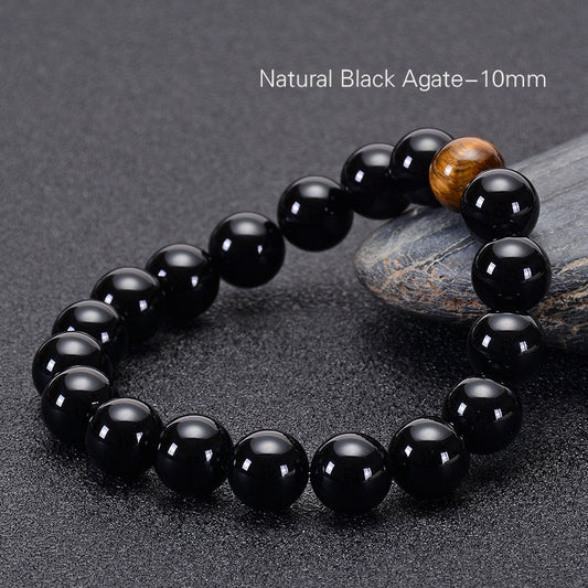 Natural Black Onyx with Tiger eye Stone Beads Men Bracelet