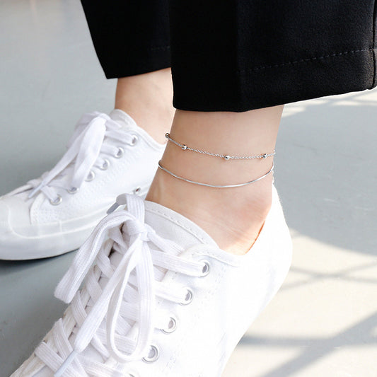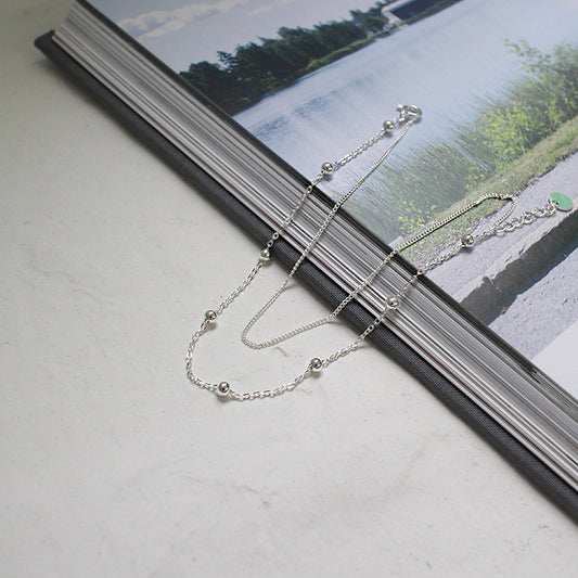 Simple Balls 925 Sterling Silver Adjustable Double Chain Anklet