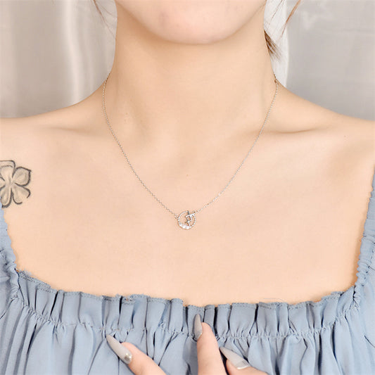 Sweet CZ Star Crescent Moon Casual 925 Sterling Silver Necklace