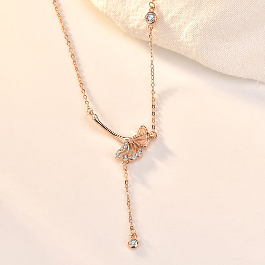 Sweet CZ Hollow Ginkgo Leaf 925 Sterling Silver Necklace