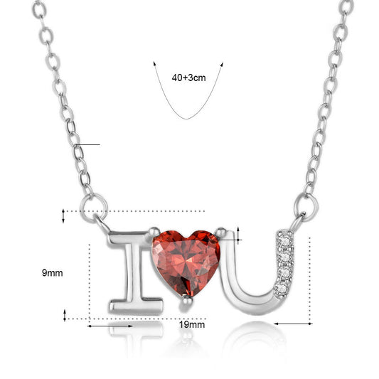 Wedding Red CZ I Love You Letters 925 Sterling Silver Necklace