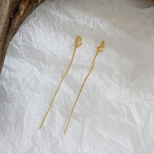 Asymmetry Geometry Triangle Tassels 925 Sterling Silver Thread Dangling Earrings