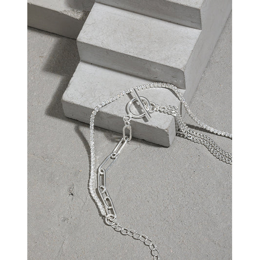 Asymmetry Double Layer Hollow Chain CZ OT 925 Sterling Silver Bracelet