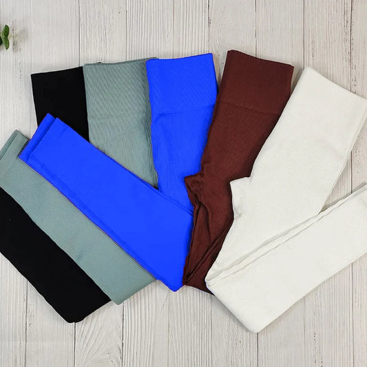 High Waist Ribbed Seamless Yoga Pants with Tummy Control