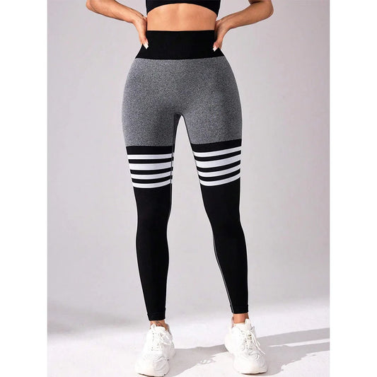 High Waist and Tummy Control Women Seamless Stripe Yoga Leggings