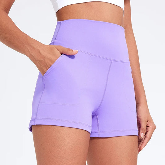 Women Shorts with Pockets Sexy Butt Lifting Fitness Cycling Tights Slim Solid Color High Waist Sports Shorts Casual Fashion Wear