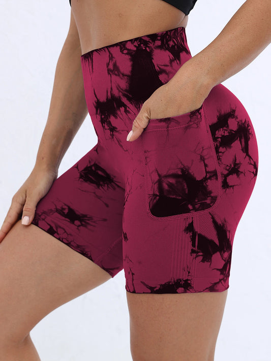 Tie Dye High Waisted Biker Shorts for Women with Pockets – Seamless Scrunch Butt Workout Shorts