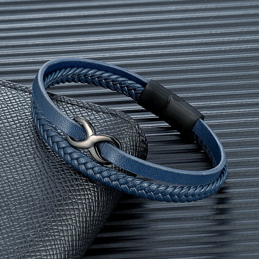 MKENDN Classic Multilayer Blue Braided Leather Infinity Bracelet – Stainless Steel Unisex Gift