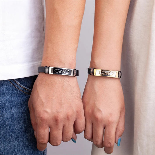 Stainless Steel 8 Infinity Bracelet for Men & Women - Leather Cuff Bangle, Perfect Valentine's Day Gift for Couples