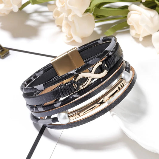 Multi-Layer Leopard PU Leather Bracelet - Magnetic Infinity Symbol Jewelry for Men and Women