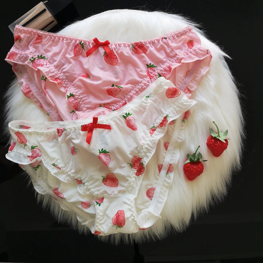 Strawberry Printed Low-Waist Panties – Soft Breathable Silk & Cotton Briefs