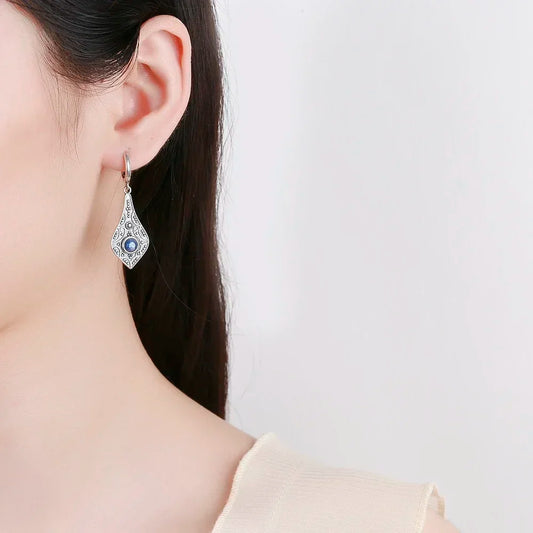 Vintage Kyanite 925 Sterling Silver Long Drop Earrings Wedding Party Gift Jewelry Natural Moonstone Earring for Women