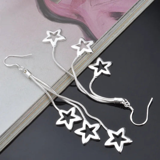 High quality noble 925 Sterling Silver Tassel hanging stars Earrings for woman fashion wedding party Jewelry Christmas Gift