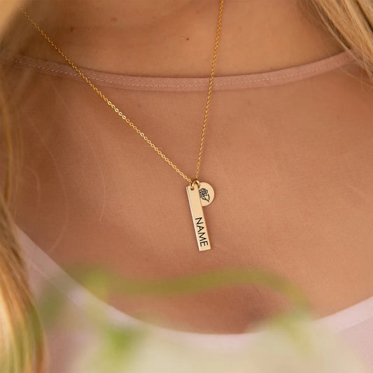 Gold Engraving Custom Letter Necklace for Women - Stainless Steel & 12 Birthstones