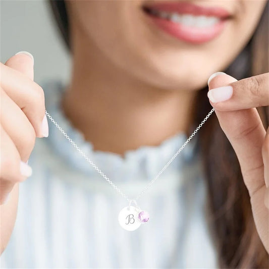 Custom Engraving Letter Necklace for Women - 12 Birthstones, Silver