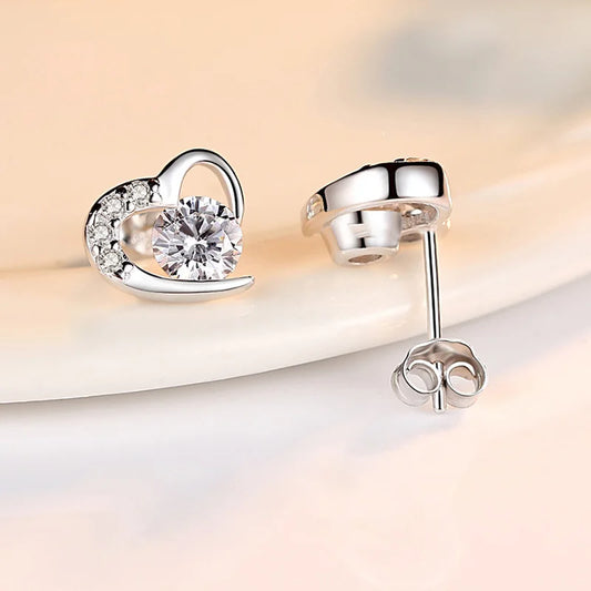Real 925 Sterling Silver Crystal Jewelry New Heart Stud Earrings For Woman XY0201