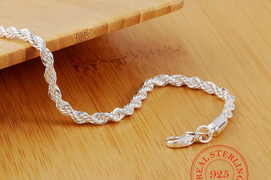 925 Sterling Silver 4MM Twisted Rope Bracelet