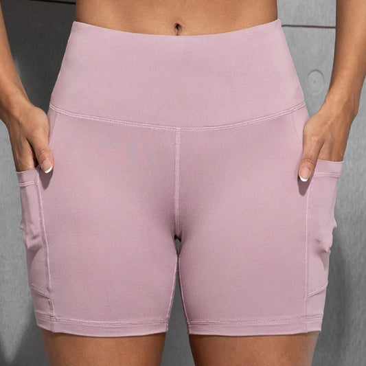 Women Shorts with Pockets Sexy Butt Lifting Fitness Cycling Tights Slim Solid Color High Waist Sports Shorts Casual Fashion Wear