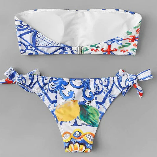 Print String Bikini Swimsuit for Women with High Waist Shorts – 2 Piece Beachwear Set