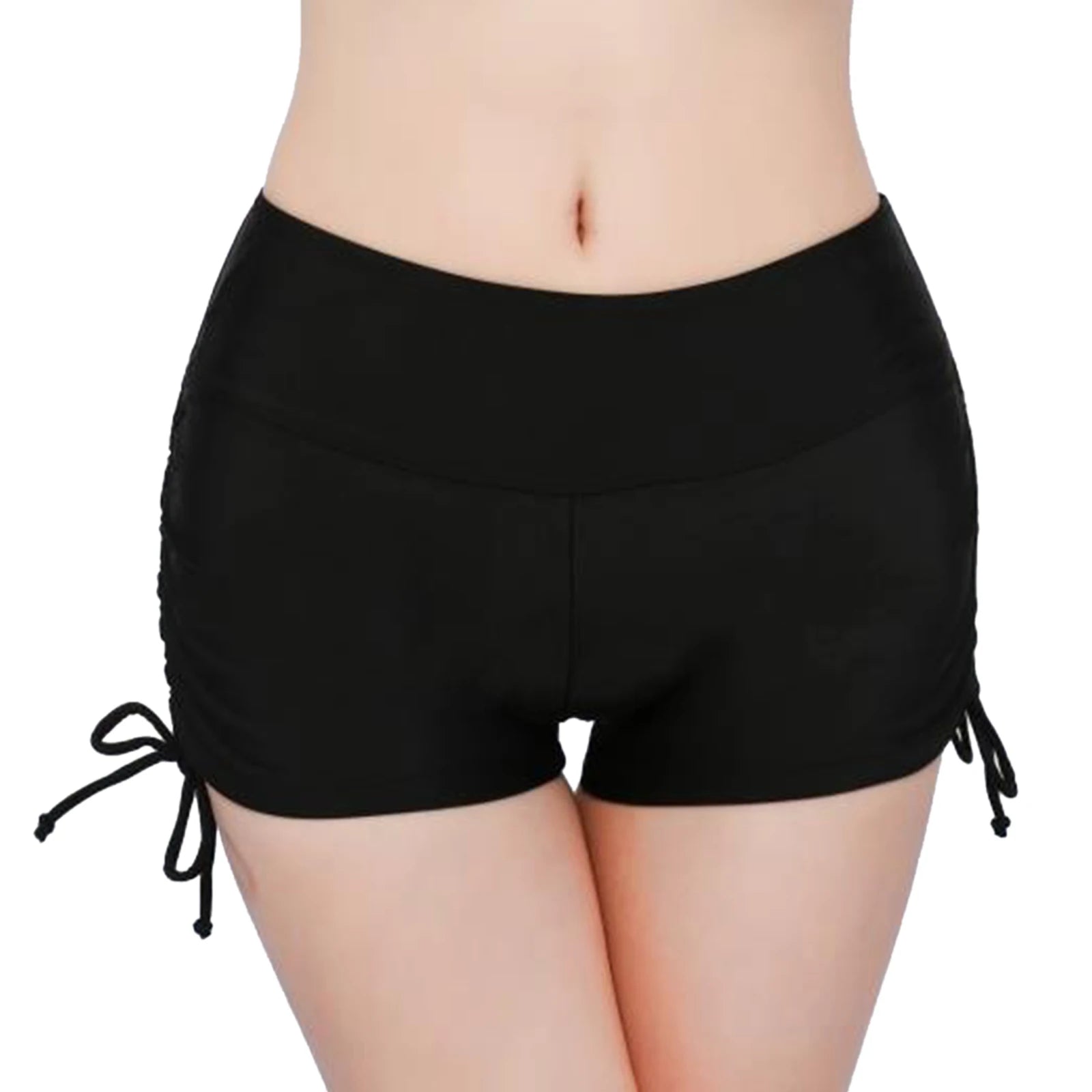 Women High Waisted Swim Shorts with Side Drawstring – Tummy Control Beachwear