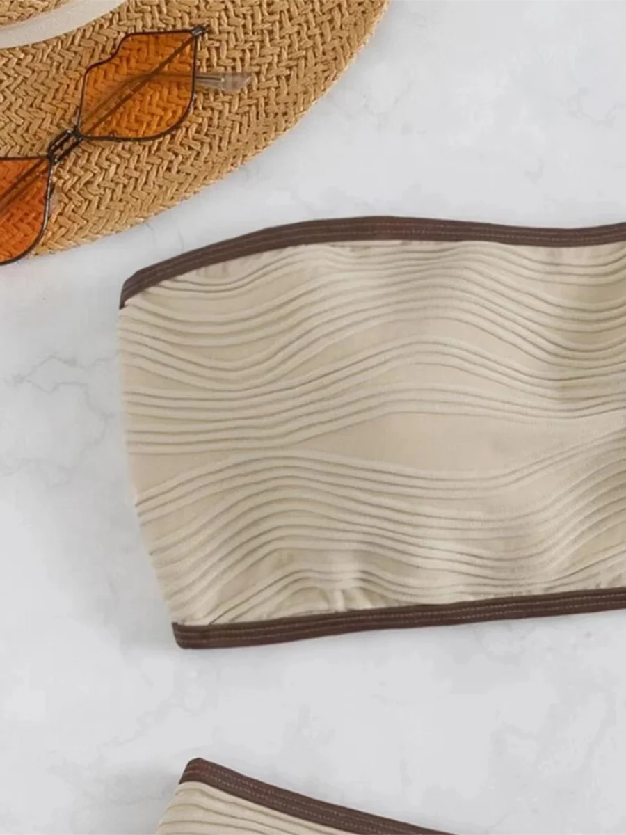 Contrast Binding Bandeau Bikini Set for Women – Push Up Thong Swimwear for Summer Beachwear