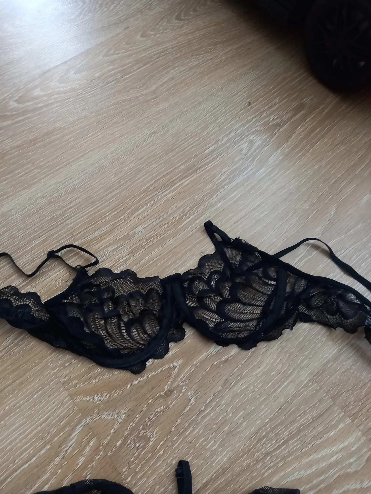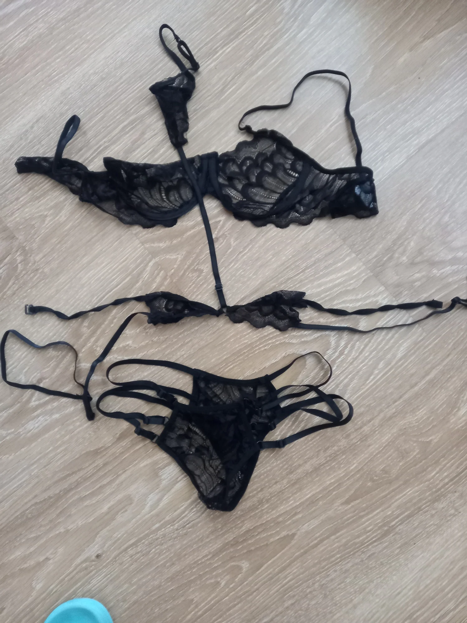 arrived quickly. I ordered XL for my M size, it fits perfectly. The set is not exactly like in the photo; the panties are not as high, and the lace on the bodice at the bottom is much shorter. Plus there is a defect.