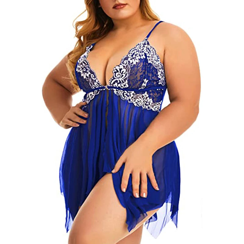 Product Description: Step into ultimate comfort and confidence with this Plus Size Lace Babydoll Chemise Nightgown Set. Designed to celebrate your curves, this beautiful chemise features a deep V-neck and delicate lace detailing for a touch of classic romance. The flowy babydoll style provides a comfortable fit that drapes effortlessly, making it perfect for a night of restful sleep or a special evening. Whether you're looking for a stunning piece of lingerie or comfortable sleepwear, this versatile nightdress is a perfect choice.