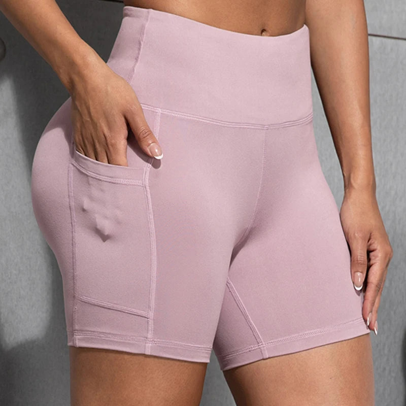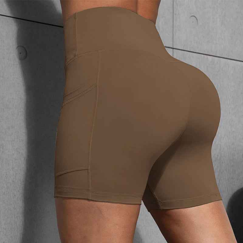 Women Shorts with Pockets Sexy Butt Lifting Fitness Cycling Tights Slim Solid Color High Waist Sports Shorts Casual Fashion Wear